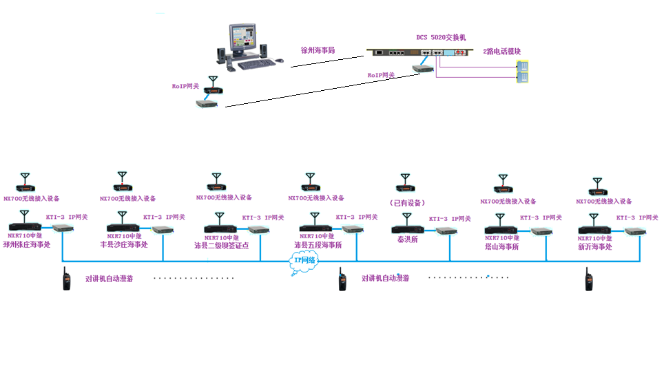 徐州市地方海事局無(wú)線(xiàn)數(shù)字聯(lián)網(wǎng)通信系統(tǒng)日前正式開(kāi)通使用。本系統(tǒng)結(jié)合徐州地方海事局管理范圍點(diǎn)多面長(zhǎng)的特點(diǎn),采用先進(jìn)的建伍數(shù)字IP聯(lián)網(wǎng)系統(tǒng)。既解決了各個(gè)點(diǎn)工作通信的需要,又滿(mǎn)足全線(xiàn)統(tǒng)一調(diào)度的工作需要。